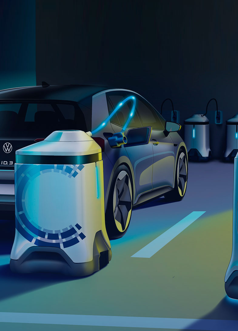 Η Volkswagen δίνει λύση στο πρόβλημα της αναζήτησης σταθμών φόρτισης για τα ηλεκτρικά αυτοκίνητα. Το Volkswagen Group Components παρουσίασε αυτόνομα κινούμενο ρομπότ φόρτισης που φροντίζει για την επαναφόρτιση των μπαταριών οποιουδήποτε ηλεκτρικού αυτοκινήτου, ενώ το τελευταίο βρίσκεται σε μία κοινή θέση στάθμευσης.